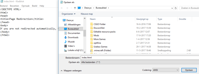 5. SLA DIT BESTAND OP ALS: index.html (let op de onderste balk)