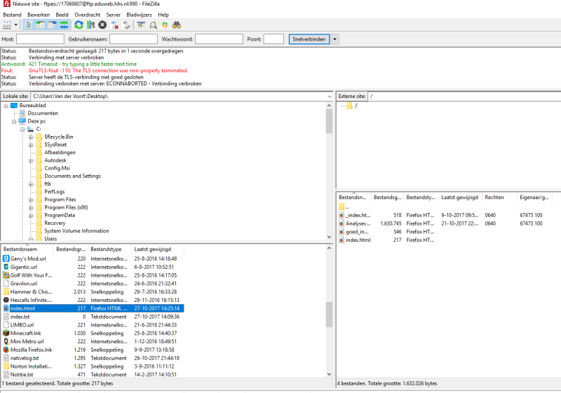 1. in filezilla: zoek in de linkerkolom je bestand op dat je hebt opgeslagen: index.html